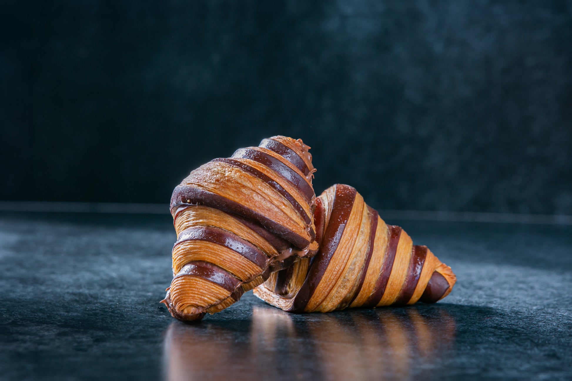 The DoughWorks mixologists have taken decadence to a whole new level with our exquisite Bi Colored Hazelnut and Chocolate Praline Croissant! This swirled delight is crafted with a unique cocoa-based dough that creates a stunning contrast and an unparalleled taste experience. It’s then infused with our homemade Hazelnut Praline chopped hazelnuts and creamy milk chocolate filling making it the perfect treat for pastry aficionados and kids alike!