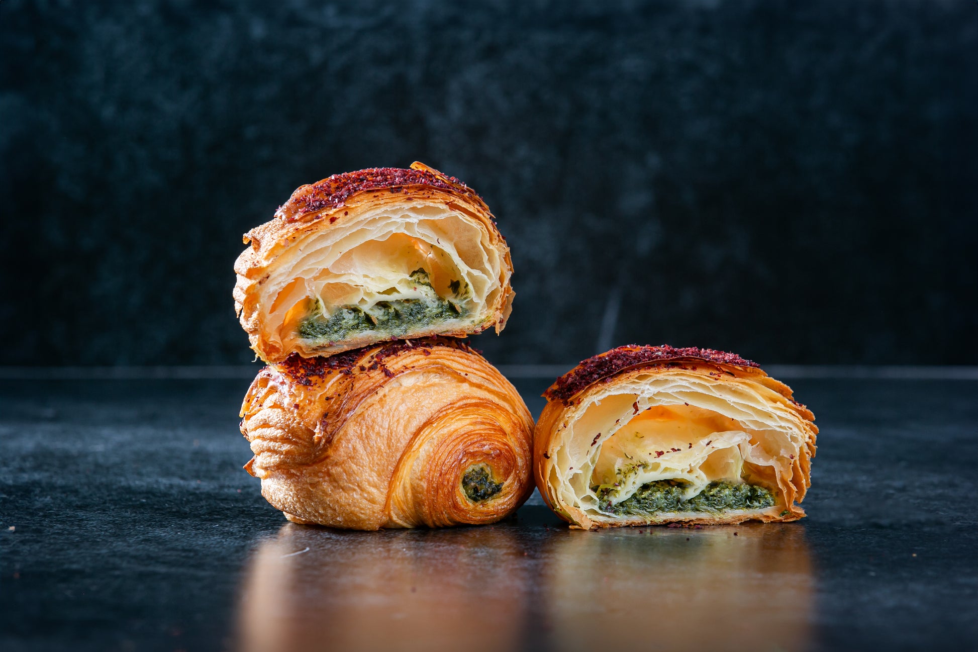 As we were contemplating ways to level up our amazing pastry creations it hit us: we need to add more cheese! A basic spinach and feta croissant just wouldn’t work in the DoughWorks lineup so we stuffed our Sourdough Croissant with all the deliciousness: salty feta creamy parmesan earthy spinach and topped it all off with bright lemony sumac. For brunch lunch or any ol’ time this croissant packs a flavourful punch!
